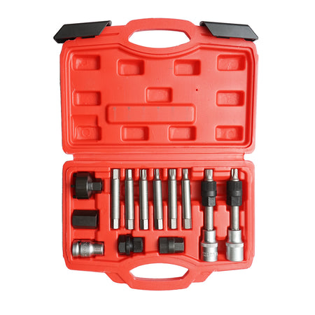 ALTERNATOR PULLEY WRENCH SET 13 PIECES allows the repair, assembly, and disassembly of the alternator. The set elements are made of Cr-V steel.