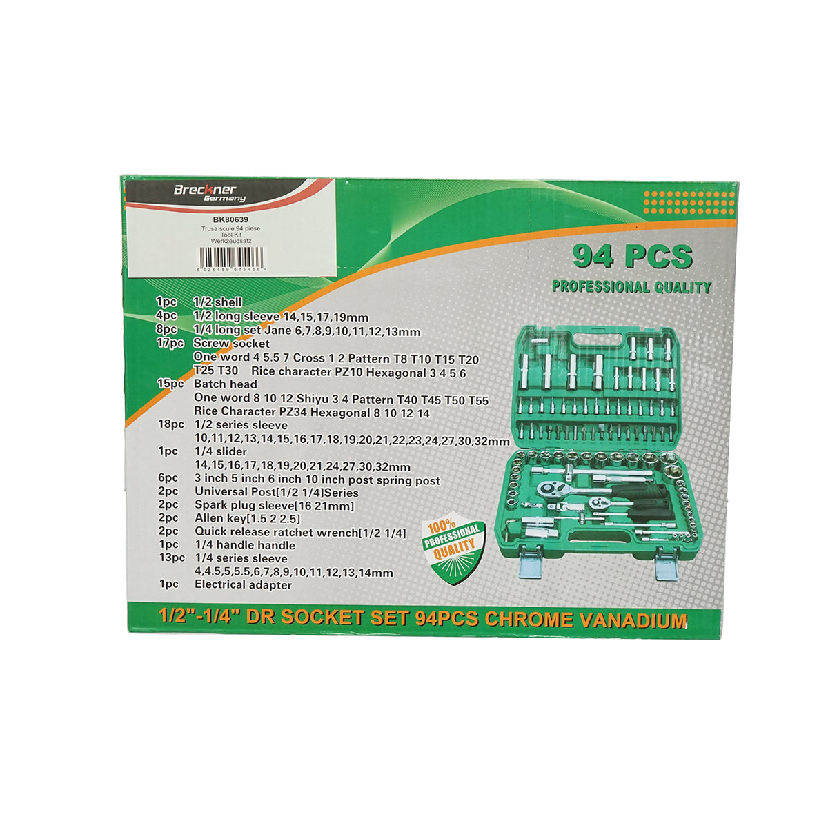 Combination wrench set, tubular, fixed, Torx, Allen driver with ratchet, 94 pieces Breckner Germany