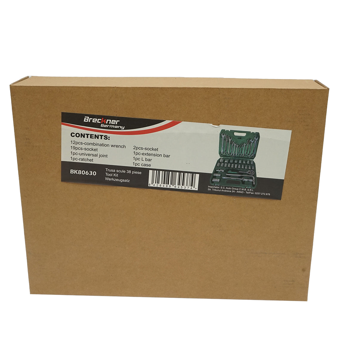 Socket wrench set 8-32mm and combination open-end wrenches 8-19mm, ratchet driver 38 pieces Breckner Germany